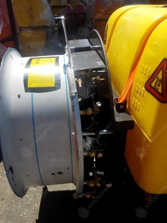 Опрыскиватель вентиляторный садовый,бак-600 литров, 4-х мембранный насос 105 л/мин, 280 кг, латунная форсунка, кардан в комплекте, функция самозакачки, гидравлическое смешивание удобрений